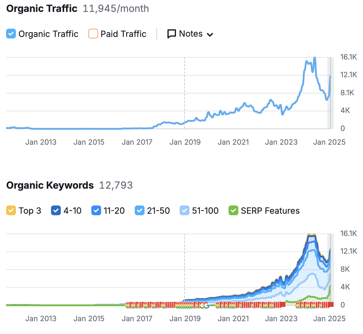 The company now averages over 10,000 organic visitors per month, having seen steady growth for years.